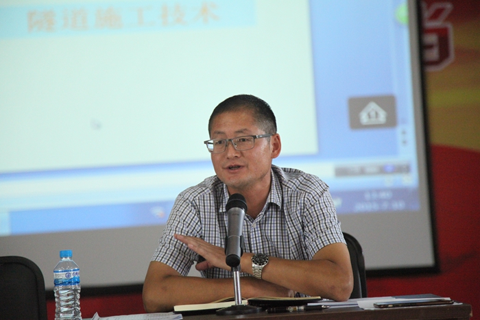 培訓(xùn)邀請(qǐng)公路高級(jí)工程師劉少偉講授了隧道施工技術(shù),重點(diǎn)培訓(xùn)了隧道工程的基本概念、施工方法和施工技術(shù);培訓(xùn)還邀請(qǐng)公司曾經(jīng)參與麻昭高速公路項(xiàng)目建設(shè)的主任工程師丁建榮講授了公路施工管理, 從駐地建設(shè)、場(chǎng)站建設(shè)、人員管理、制度建設(shè)、臨時(shí)工程、文明施工等7個(gè)方面對(duì)高速公路施工標(biāo)準(zhǔn)化技術(shù)進(jìn)行了系統(tǒng)的講解。