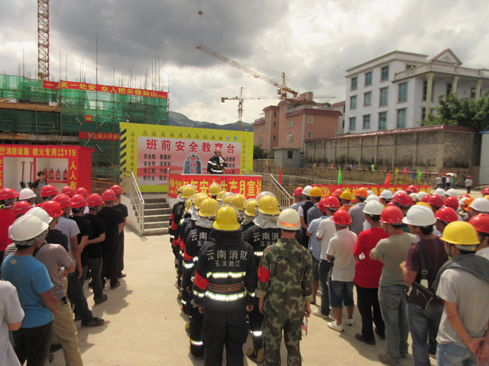 技術(shù)支持: 方森科技 根據(jù)國(guó)家、省市、公司安全生產(chǎn)月的有關(guān)規(guī)定,第三直管項(xiàng)目部積極響應(yīng)活動(dòng)要求,在6月26日組織撫仙湖北岸濕地安置房龍潤(rùn)園一期建設(shè)項(xiàng)目部開(kāi)展“火災(zāi)事故消防應(yīng)急演練”。玉溪撫投公司、澄江縣住建局、澄江縣15家建筑企業(yè)、澄江縣24個(gè)在建項(xiàng)目主要負(fù)責(zé)人均蒞臨現(xiàn)場(chǎng)觀摩指導(dǎo)。玉溪電視臺(tái)對(duì)此次演練進(jìn)行了報(bào)道。