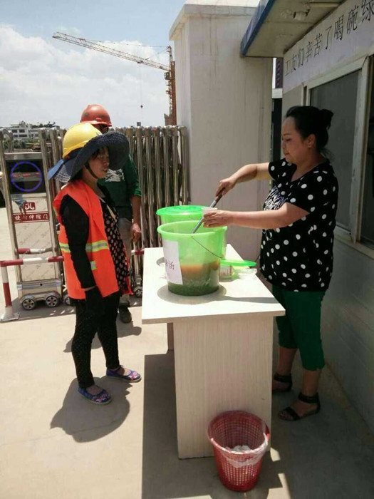 為保障施工工人的身體健康,保證安全生產(chǎn),五〇七直管部五里中央商務(wù)區(qū)項目部采取切實有效的防護措施,堅持以人為本,認真做好一線工人的防暑降溫工作。近日,由五里中央商務(wù)區(qū)項目部項目經(jīng)理李朝松牽頭,熬制解暑綠豆粥給各位職工、工人分食,避免中暑現(xiàn)象的發(fā)生。直管部黨支部書記崔建欣、工會主席畢鵬等領(lǐng)導(dǎo)親自到施工現(xiàn)場慰問、送清涼,為一線員工和農(nóng)民工朋友加油鼓勁。送清涼活動切實保障了廣大員工的安全健康,同時也激發(fā)了員工的工作熱情。