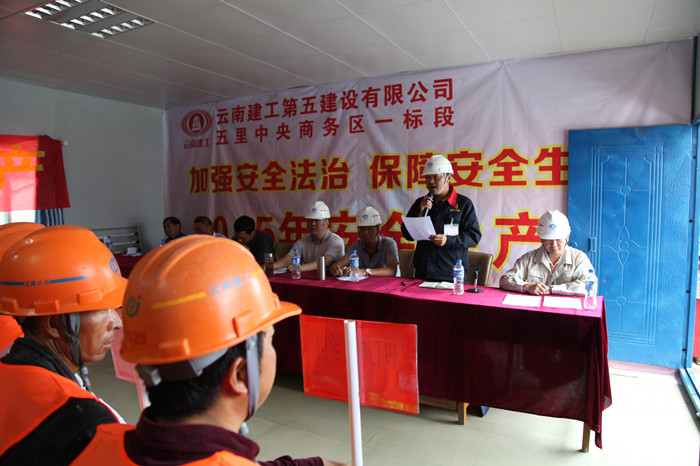 技術(shù)支持: 方森科技 “我代表云南建工第五建設(shè)有限公司,昆明市官渡區(qū)五里中央商務(wù)區(qū)A22號(hào)地塊一標(biāo)段項(xiàng)目部全體管理人員鄭重宣誓:作為項(xiàng)目管理人員,我們將以‘加強(qiáng)安全法治,保障安全生產(chǎn)’為主題,認(rèn)真學(xué)習(xí)《安全生產(chǎn)法》……創(chuàng)建‘人人管安全,人人要安全’的和諧現(xiàn)場(chǎng)……”這是五〇七直管項(xiàng)目部五里中央商務(wù)區(qū)項(xiàng)目部項(xiàng)目經(jīng)理李朝松在“安全生產(chǎn)月”活動(dòng)啟動(dòng)中所作的宣誓承諾。
