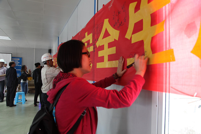 直管部、項(xiàng)目管理團(tuán)隊(duì)在布標(biāo)上簽字