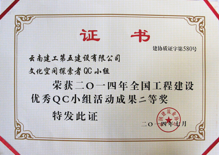 第四直管部文化空間項(xiàng)目部探索者QC小組從2012年至2013年歷時(shí)10個(gè)月時(shí)間深入地開展了針對(duì)超高層建筑高強(qiáng)度混凝土外觀質(zhì)量合格率的研究調(diào)查,并申報(bào)了QC成果,進(jìn)行了發(fā)布,最終取得“全國工程建設(shè)優(yōu)秀QC小組二等獎(jiǎng)”殊榮。