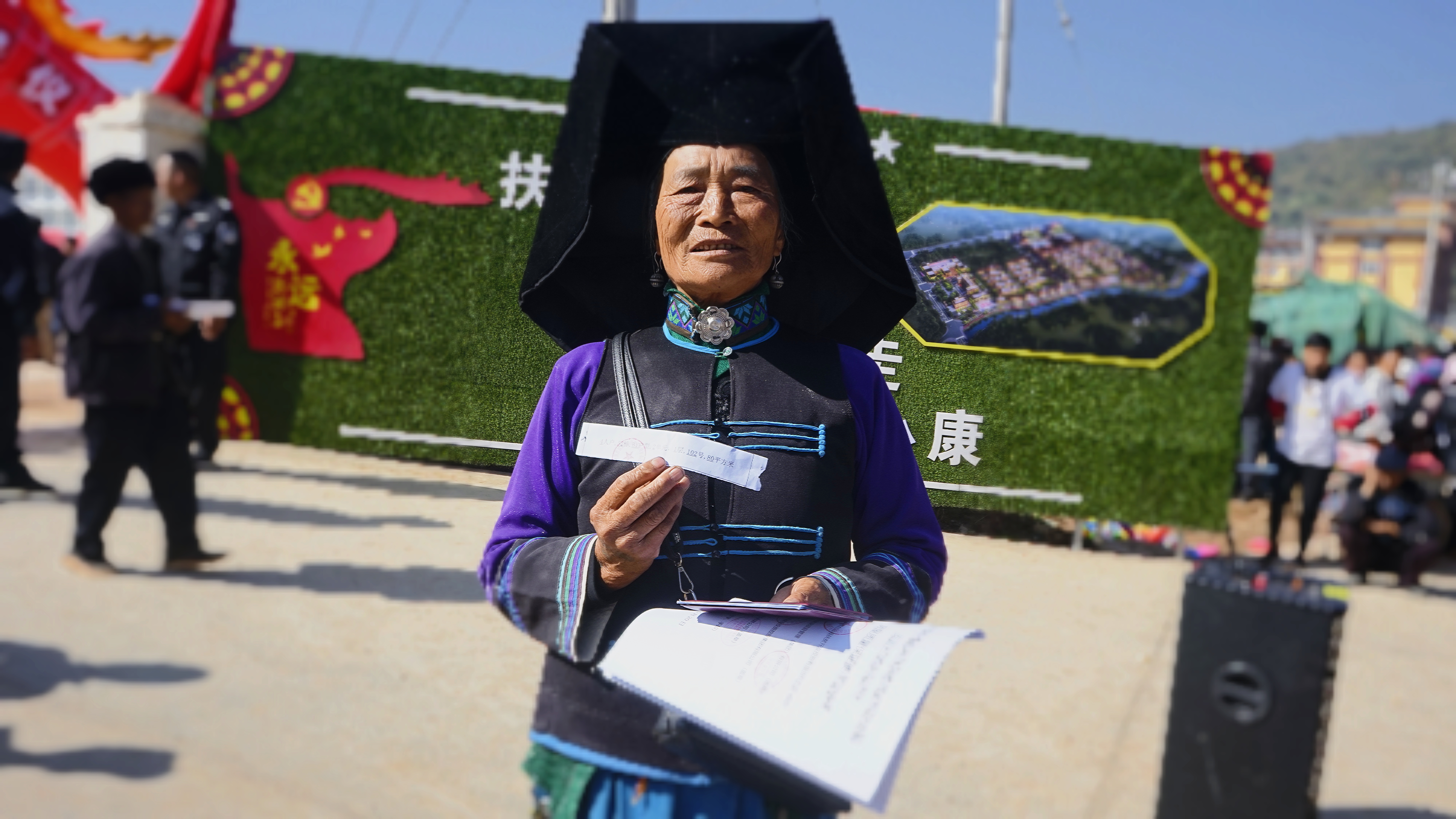 來(lái)自寧蒗彝族自治縣15個(gè)鄉(xiāng)鎮(zhèn)的建檔立卡困難群眾早上七點(diǎn)開(kāi)始就在項(xiàng)目部駐地外集合等待抽簽。在三名村民代表的見(jiàn)證下,易地辦工作人員將啟封簽條放入抽簽箱,抽簽工作正式啟動(dòng)。整個(gè)分房流程為按戶(hù)型排隊(duì)進(jìn)場(chǎng)-抽取對(duì)應(yīng)戶(hù)型簽條-簽條登記-領(lǐng)取房屋質(zhì)量保證書(shū),現(xiàn)場(chǎng)2000多人在民警和工作人員的疏導(dǎo)之下井然有序,項(xiàng)目部還專(zhuān)門(mén)設(shè)立了問(wèn)詢(xún)小組,幫助辦完手續(xù)的村民在鳥(niǎo)瞰圖上查找棟號(hào)、單元號(hào),一一回答村民提出的問(wèn)題,幫助村民快速找到自己的新家。