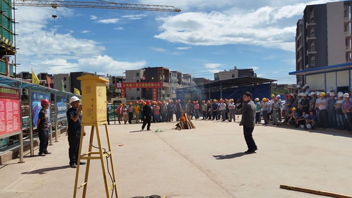 技術(shù)支持: 方森科技 6月25日下午15點,由五〇三直管項目部施工的楚雄陽光花園小區(qū)三期保障性住房項目部開展消防演練。楚雄市住房和城鄉(xiāng)建設(shè)局副局長趙興副和楚雄市住建局工程質(zhì)量安全監(jiān)管科副科長申宇等,帶領(lǐng)楚雄市多個在建工地人員150余人,到由演練現(xiàn)場參觀學(xué)習(xí)。