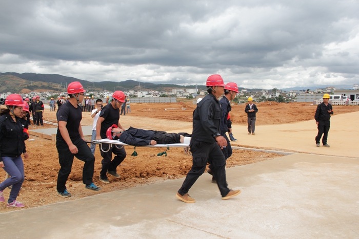 此次參演人數為100人,其中管理人員30人,勞務人員70人。演練特別邀請了隆陽區(qū)公安消防大隊楊教官、建設單位指揮部領導、監(jiān)理單位代表、保山保障房項目指揮部代表蒞臨現場進行指導。