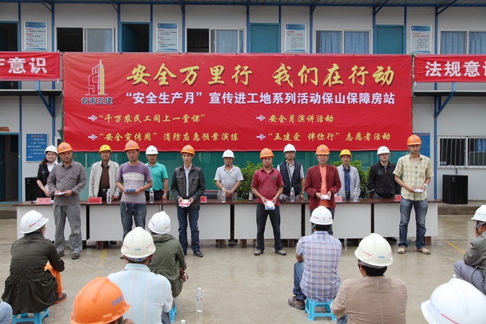 “安全萬里行 我們?cè)谛袆?dòng)”,6月15日上午,公司與保山保障房建設(shè)指揮部共同在保山保障房隆陽區(qū)5#地塊現(xiàn)場(chǎng)基地組織安全生產(chǎn)月及“千萬農(nóng)民工同上一堂課”活動(dòng)。
