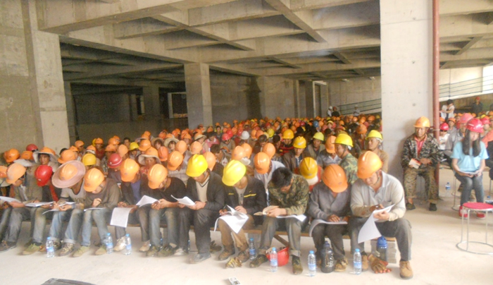 此次培訓(xùn)對(duì)象為項(xiàng)目部全體管理人員和農(nóng)民工。培訓(xùn)方式以傳統(tǒng)教學(xué)為主,用近年來(lái)在施工過(guò)程中發(fā)生的安全事故為例子,并向工人們分析了事故發(fā)生的原因、過(guò)程和解決事故及采取的相應(yīng)措施,向工人們宣傳了安全生產(chǎn)工作的重要性。結(jié)合項(xiàng)目部安全檢查的實(shí)際情況,列舉工人們?cè)谑┕どa(chǎn)作業(yè)中的不安全行為,并要求工人應(yīng)自檢自查。整個(gè)培訓(xùn)活動(dòng)中工人們踴躍發(fā)言交流,對(duì)項(xiàng)目安全生產(chǎn)工作提出了寶貴的意見(jiàn)和建議。