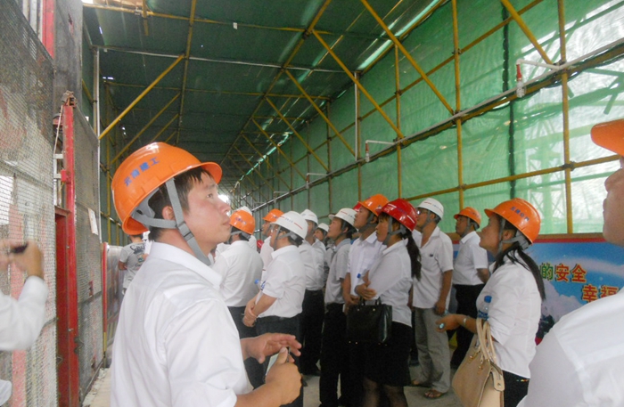 項目部首先召開了簡介會,對七彩云南第壹城項目進行初步介紹。隨后,帶領參觀隊伍分成兩隊深入現(xiàn)場參觀考察,過程中大家圍繞施工方法、結構構造、施工經驗及安全質量管理進行經驗交流,參觀隊伍對項目部的節(jié)點控制、工藝細節(jié)高度贊賞。