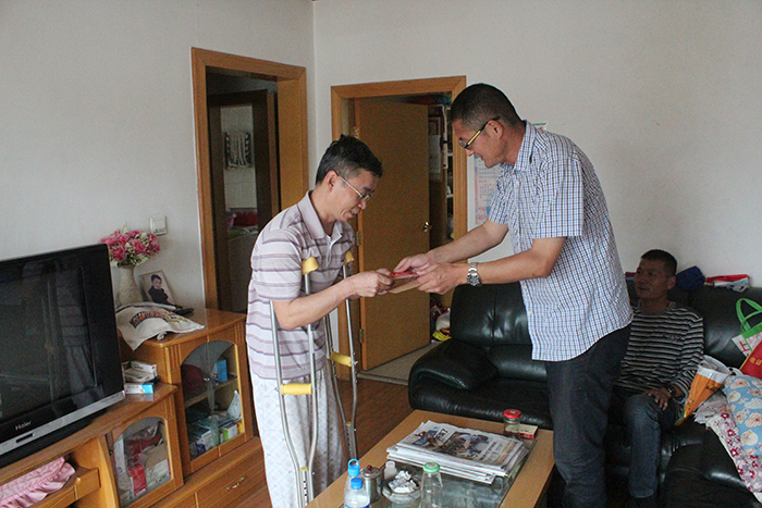技術(shù)支持: 方森科技 2013年9月16日上午,公司第八直管項(xiàng)目部看望了因工傷在家休養(yǎng)的職工石亞南,了解了他的恢復(fù)情況,并為他送上節(jié)日的慰問(wèn)。在中秋佳節(jié)到來(lái)之際,直八部考慮到石亞南雖然享受了工傷的優(yōu)惠政策,每月工資沒(méi)有受到影響,但他為恢復(fù)骨折而進(jìn)行的治療費(fèi)用金額較高,結(jié)合實(shí)際情況,直管部不僅為他送去了過(guò)節(jié)費(fèi),還送去500元的困難職工慰問(wèn)金。