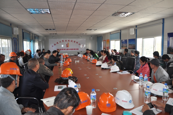 參觀團首先聽取了項目部人員對該項目及過程工序樣板房的介紹,隨后參觀了施工現(xiàn)場,重點參觀了過程工序樣板房。總結(jié)交流會上,總經(jīng)理助理史呈森,安全總監(jiān)劉路明對玉溪公租房項目部提出的“方案先行、樣板領(lǐng)路、過程控制、資料同步”等措施給予肯定,對直三部率先在公司采用的工具式圍欄也給予肯定,同時也針對項目的優(yōu)缺點對各直管部提出了進一步的要求。