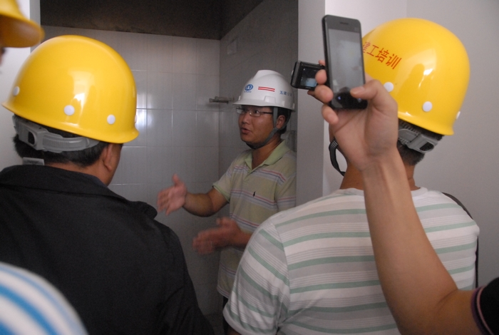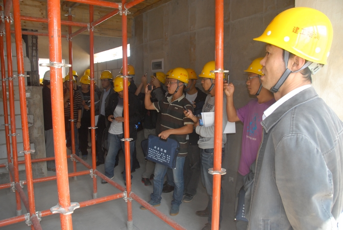 到項(xiàng)目參觀學(xué)習(xí)的技術(shù)骨干,是集團(tuán)首批項(xiàng)目總工及技術(shù)負(fù)責(zé)人培訓(xùn)班的學(xué)員,在項(xiàng)目部人員的介紹下,學(xué)員們了解了整個(gè)項(xiàng)目的建設(shè)情況,并重點(diǎn)了解了過(guò)程工序樣板房的打造和實(shí)施。在項(xiàng)目部人員的陪同下,學(xué)員們參觀了樣板房實(shí)體。部分學(xué)員還在參觀學(xué)習(xí)中與項(xiàng)目部管理人員展開(kāi)了交流討論。