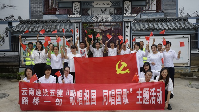 “我和我的祖國(guó),一刻也不能分割……”悠揚(yáng)的音樂(lè)聲響起,路橋一部二線員工舞動(dòng)著五星紅旗,走出辦公室,在直管部門前集合,齊聲合唱《義勇軍進(jìn)行曲》《建投之歌》和《我和我的祖國(guó)》。8月15日,路橋一部直管部所在地及各項(xiàng)目部駐地開(kāi)展了“歌唱祖國(guó),同唱國(guó)歌”主題活動(dòng),寧蒗、施甸、麗江、大理、昆明,幾個(gè)項(xiàng)目部與直管部異地同音,用自己的歌聲唱出了對(duì)祖國(guó)的美好祝愿。