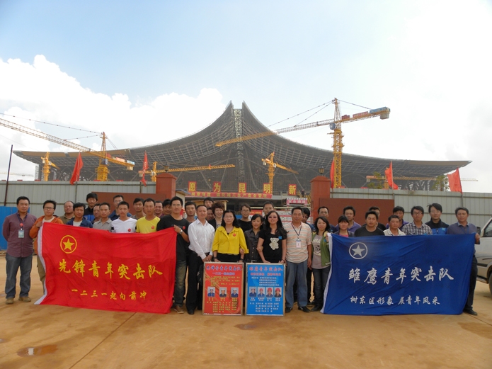 9月19日上午,集團(tuán)公司團(tuán)委副書記雷棲、公司團(tuán)委副書記楊春華等聯(lián)袂到公司新機(jī)場(chǎng)直管部為東、西兩個(gè)施工區(qū)的青年人舉行 “青年突擊隊(duì)”授旗儀式,這標(biāo)志著新機(jī)場(chǎng)直管部的兩支青年突擊隊(duì)——雛鷹隊(duì)和先鋒隊(duì)正式成立。