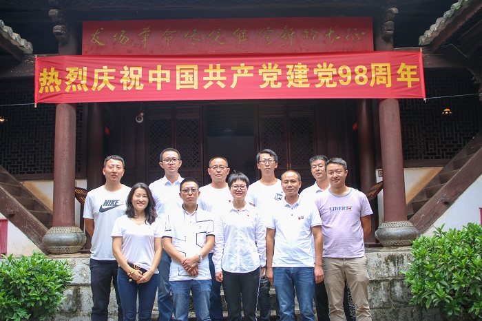 在柯渡紀(jì)念館,全體黨員面對(duì)黨旗重溫入黨誓詞,集體宣讀長征精神,懷著對(duì)黨發(fā)自內(nèi)心的感恩之情傳唱了《義勇軍進(jìn)行曲》、《沒有共產(chǎn)黨就沒有新中國》、《歌唱祖國》、《團(tuán)結(jié)就是力量》等歌曲來追憶革命先烈精神,同時(shí)激情高昂的合唱《建投之歌》。