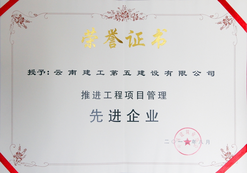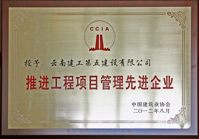 公司榮獲的“推進(jìn)工程項(xiàng)目管理先進(jìn)企業(yè)”證書