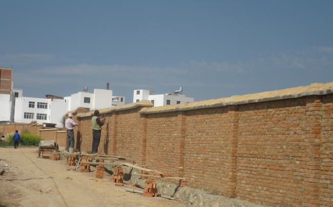 圖為3月8日圍墻施工現(xiàn)場(chǎng)