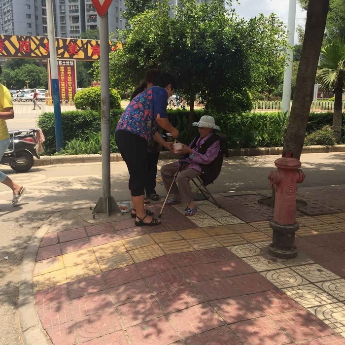 王師安撫老人說(shuō)道:“你放心,我們一定會(huì)幫你的,你等等,我先給你打點(diǎn)飯吃?!痹诠鹃T(mén)衛(wèi)室拿了個(gè)凳子給老人坐下后,王師又急急忙忙跑回食堂,還好食堂員工們還在吃飯,王師打了一盒飯菜趕緊送到老人手中。