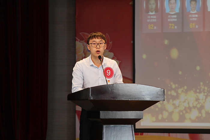 公開競選中,選手們要在規(guī)定的4分鐘內(nèi)展示自己,贏得投票。選手們聲情并茂,用一句句樸實(shí)的話語展現(xiàn)了他們吃苦耐勞、堅(jiān)韌不拔的精神面貌,激勵了在場的每一位青年職工樹立目標(biāo)、懷抱夢想、勇于拼搏。9號選手楊揚(yáng)講述了他進(jìn)駐宣威得祿鄉(xiāng)兩年的扶貧故事,一張張入戶走訪、幫老鄉(xiāng)賣農(nóng)產(chǎn)品的照片深深打動了在場觀眾。
