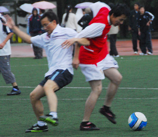 在晚秋的霏霏細雨中,五建五分公司與公司機關于11月4日舉行了一次足球友誼賽,活躍職工業(yè)余文化生活,增進友誼。 伍軒 攝影