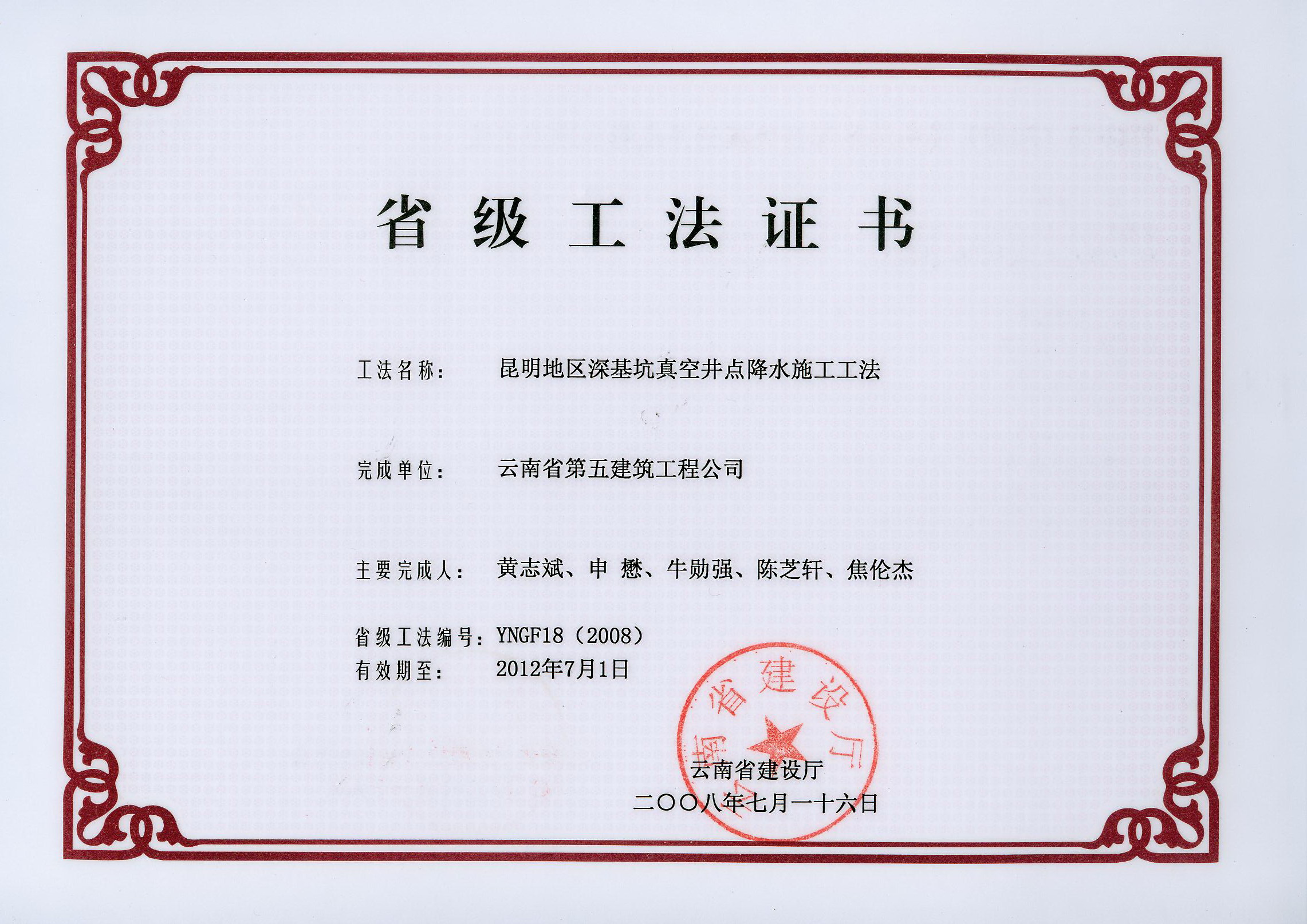 云南五建編制的省級工法——昆明地區(qū)深基坑真空井點降水施工工法