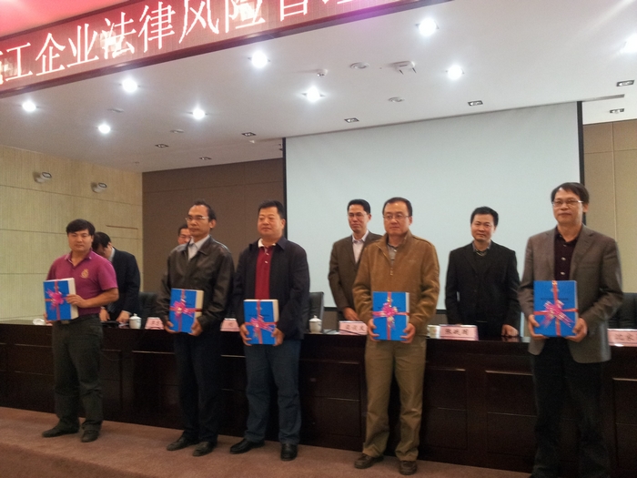 集團(tuán)公司總經(jīng)理劉勇,黨委副書(shū)記、紀(jì)委書(shū)記張戰(zhàn)國(guó),云南省司法廳法制宣傳處處長(zhǎng)梁俊友及國(guó)資委政策法規(guī)處處長(zhǎng)李志明為集團(tuán)各公司發(fā)放了匯編有云南建工集團(tuán)二十個(gè)典型案例以及建設(shè)工程法律實(shí)務(wù)研討的《施工企業(yè)法律風(fēng)險(xiǎn)管理》一書(shū),并請(qǐng)建緯(昆明)律師事務(wù)所律師為參會(huì)人員進(jìn)行了一場(chǎng)主要針對(duì)施工企業(yè)法律風(fēng)險(xiǎn)管理的“六五”普法專(zhuān)題講座。