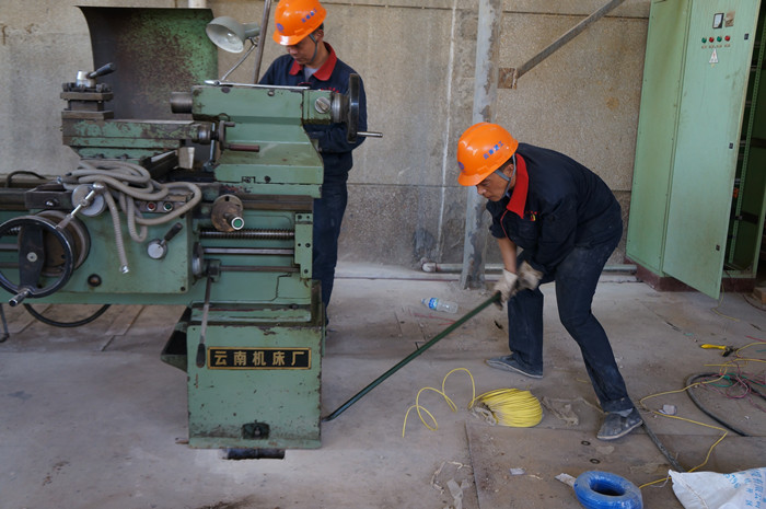 該項目的工程內(nèi)容為配電屏拆除與安裝、平刨壓設(shè)備、鉆床安裝,車床安裝,剪床安裝等。該項目是第二安裝直管項目部獨立經(jīng)營、獨立承接的項目。項目體量雖然不大,但這是公司時隔多年后再次與天威云南變壓器股份有限公司的合作,所以項目部也非常重視。為此,項目部在進場前特地為8名操作人員定制了工裝,召開了動員會,要求全體人員在施工中注重文明禮貌,服從廠區(qū)的統(tǒng)一管理,制定設(shè)備拆裝的安全質(zhì)量方案,快速高效完成這個項目。