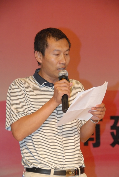公司董事長(zhǎng)楊福和宣布本屆籃球賽閉幕