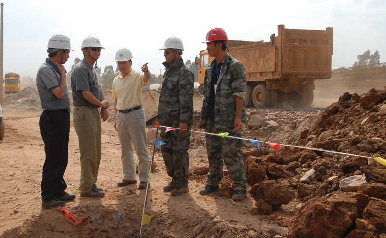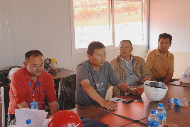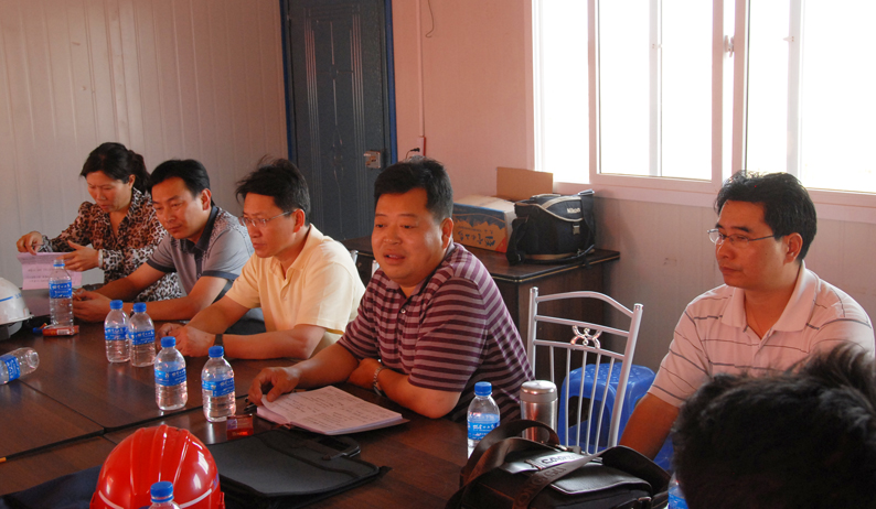 公司副總經(jīng)理兼第三直管部經(jīng)理段培勇介紹了工程施工組織管理情況。該工程的工期十分緊張,從4月6日根據(jù)建工集團(tuán)要求緊急進(jìn)場增援施工以來,五建公司第三直管部、五建市政工程公司以及近日進(jìn)場的503直管部一直晝夜施工,連續(xù)奮戰(zhàn),沒有休過一天的節(jié)假日。工程場地非常狹窄,幾乎天天都要為尋找堆土場地費盡心思,還要花費大量精力協(xié)調(diào)與當(dāng)?shù)卮迕竦年P(guān)系。在整個工程施工中,不僅與集團(tuán)內(nèi)兄弟單位展開無形中的勞動競賽,而且還要與國字號的專業(yè)隊伍同臺競技。參建同志決心為公司和集團(tuán)榮譽全力一搏,以優(yōu)秀的建設(shè)業(yè)績報答上級的信任。針對施工現(xiàn)場地處低洼排水不暢、淤積泥土極其松軟的地質(zhì)條件,提出了分工合作、協(xié)同作戰(zhàn),搶在雨天到來之前全力拼搏搶進(jìn)度的工作思路。