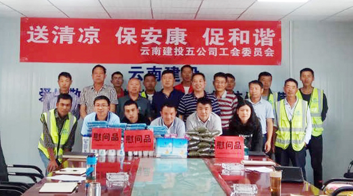 5月23日,近40度的高溫下,公司副總經(jīng)理施文鐘帶隊(duì)奔赴第七直管項(xiàng)目部施工的蘭坪縣營(yíng)盤鎮(zhèn)易地扶貧搬遷項(xiàng)目、蘭福公路項(xiàng)目調(diào)研,并代表公司領(lǐng)導(dǎo)班子,與公司工會(huì)人員開展“送清涼、保安康、促和諧”的送清涼慰問活動(dòng)。