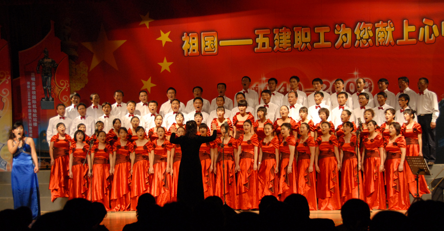 云南建工第五建設(shè)有限公司于9月28日晚在公司禮堂隆重舉辦以《祖國――五建職工為你獻上心中的歌》為主題的文藝晚會,慶祝中華人民共和國建立六十周年。來自公司和基層22個單位的700多 名職工,共演出了19個節(jié)目,以飽滿的熱情祝福偉大的社會主義祖國,用嘹亮的歌聲抒發(fā)對偉大祖國的熱愛,以昂揚的斗志表達實現(xiàn)公司跨越式發(fā)展的決心。云南建工集團總公司董事長、黨委書記納杰,副書記、紀委書記張戰(zhàn)國,工會主席陳文雙,集團前黨委書記張平濤等領(lǐng)導(dǎo)和來自集團內(nèi)外的嘉賓和五建干部職工一起觀看了演出,并和大家一起放聲合唱《歌唱祖國》。