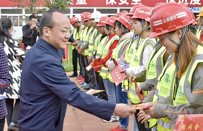 9月18日上午,集團(tuán)公司黨委副書記、工會(huì)主席陳文雙到公司云南綠色能源產(chǎn)業(yè)園區(qū)項(xiàng)目對奮戰(zhàn)在一線的114名項(xiàng)目管理人員和50名民工代表進(jìn)行慰問,集團(tuán)工會(huì)副主席趙艷波,公司黨委書記、副董事長張曉峰,總經(jīng)濟(jì)師呂榮偉,工會(huì)主席冷蕊參加慰問。