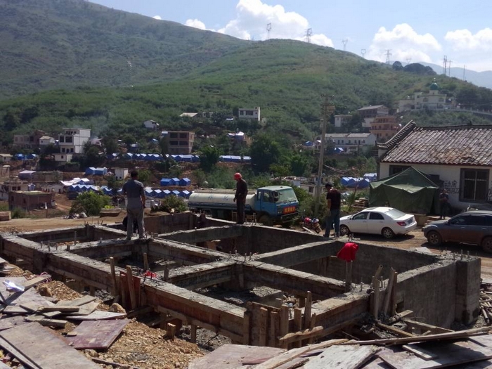 直九部:魯?shù)辇堫^山災后重建樣板房基礎澆筑完成