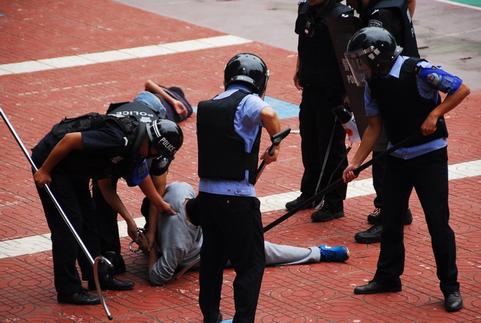 “黑林鋪派出所,黑林鋪派出所,五公司受到暴恐襲擊,請火速支援,請火速支援!”8月15日上午10點多,一輛面包車突然沖進公司大門,車上跑下來四名手持長刀及斧頭的蒙面“恐怖分子”,公司保衛(wèi)部立即組織職工撤回機關辦公樓進行防御,并第一時間請求黑林鋪派出所進行支援。 暴恐分子猛擊辦公樓大門及窗戶,并開始縱火、打砸物品。2分鐘后,黑...