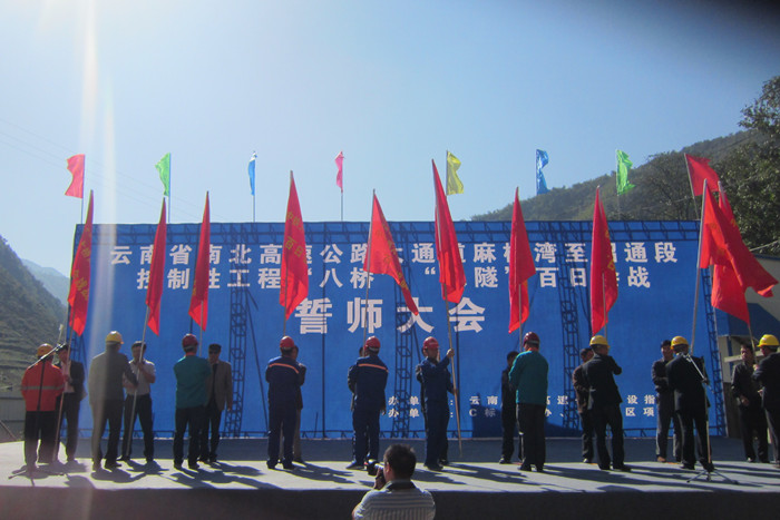 2013年9月29日,麻昭指揮部在中國鐵建C5工區(qū)拌合站舉行“八橋”“八隧”百日會戰(zhàn)誓師大會,至此“百日大會戰(zhàn)”拉開序幕。 9月29日晚八點,云南建工麻昭高速指揮部召開緊急會議,相關(guān)領(lǐng)導(dǎo)做了動員講話,并聽取了各工區(qū)的簡單匯報。對于存在的問題,指揮部領(lǐng)導(dǎo)表示將積極配合解決。為加快工作進度,確?!鞍偃諘?zhàn)”取得全面勝利,指揮部...