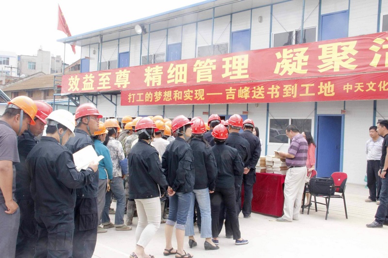 農(nóng)民工作家送書到工地