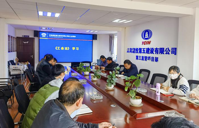3月7日-10日,第三直管項(xiàng)目部在五華區(qū)人民醫(yī)院項(xiàng)目部、直管部二線組織管理人員集中學(xué)習(xí)《中華人民共和國工會(huì)法》。新《工會(huì)法》適應(yīng)了建立社會(huì)主義市場經(jīng)濟(jì)體制發(fā)展的要求,有利于充分發(fā)揮工會(huì)作為黨和政府聯(lián)系職工群眾的橋梁紐帶作用,對(duì)建立穩(wěn)定和諧的勞動(dòng)關(guān)系、穩(wěn)定大局,具有十分重要的意義。在學(xué)習(xí)會(huì)上,直管部工會(huì)主席邢菲對(duì)《工會(huì)法》的主要內(nèi)容進(jìn)行了宣傳,著重強(qiáng)調(diào)了新舊版《工會(huì)法》的修改對(duì)比,引導(dǎo)職工學(xué)會(huì)用法律…