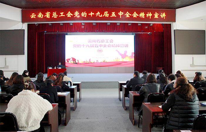 12月18日下午,云南省總工會(huì)在公司宣講黨的十九屆五中全會(huì)精神及習(xí)近平總書(shū)記在全國(guó)勞動(dòng)模范和先進(jìn)工作者表彰大會(huì)上的重要講話精神。集團(tuán)工會(huì)副主席趙艷波主持宣講活動(dòng),公司工會(huì)主席冷蕊,機(jī)關(guān)各職能部門(mén)代表及各直管部、實(shí)體工會(huì)主席帶隊(duì)共96人參加宣講。活動(dòng)邀請(qǐng)了云南省工青婦干部學(xué)校社會(huì)學(xué)副教授、黨政辦公室副主任劉瑞華老師為公司做黨的十九屆五中全會(huì)精神專題輔導(dǎo)和宣講,還邀請(qǐng)了全國(guó)勞模李永山、云南省勞模魏東作…