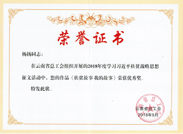 公司職工獲省總工會“學習習近平扶貧戰(zhàn)略思想”征文活動優(yōu)秀獎