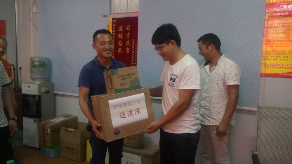 7月3日下午,直管部在組織項(xiàng)目經(jīng)理及項(xiàng)目安全員召開安全培訓(xùn)之際,由直管部副書記寧德志給保山復(fù)烤廠項(xiàng)目、怒江消防大隊(duì)項(xiàng)目、昆明三污項(xiàng)目、滇中新區(qū)項(xiàng)目、新寶象河項(xiàng)目分發(fā)“送清涼”活動物品。 項(xiàng)目代表現(xiàn)場領(lǐng)取了清涼油、藿香膠囊、板藍(lán)根顆粒等防中暑物品。遠(yuǎn)在浙江的天臺項(xiàng)目,雖路途遙遠(yuǎn),但也采取郵寄的方式,給遠(yuǎn)離家鄉(xiāng)的職工送去一絲絲涼意。 ...