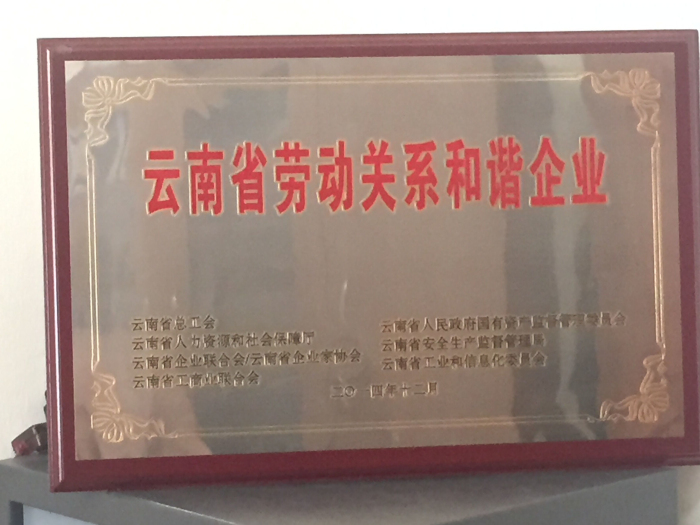 公司榮獲2014年度云南省勞動關系和諧企業(yè)榮譽稱號