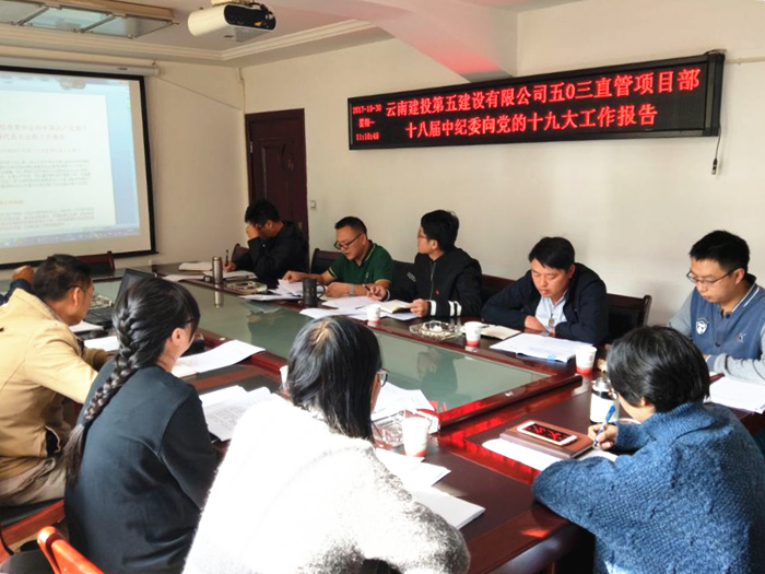 11月3日上午,五〇八直管部到曲靖鳳棲雅苑項(xiàng)目部組織學(xué)習(xí)十九大精神,共14名職工參加了學(xué)習(xí)。 此次學(xué)習(xí)的內(nèi)容包括十九大報(bào)告原文及集團(tuán)學(xué)習(xí)中國(guó)共產(chǎn)黨第十九次代表大會(huì)6次簡(jiǎn)報(bào)。會(huì)上,直管部黨支部書記與項(xiàng)目部職工一起謀劃新時(shí)代如何立足本職崗位,激發(fā)新作為。 直管部要求:干部群眾要持續(xù)保持對(duì)十...