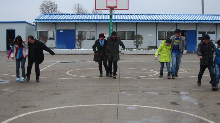 12月21日,昭通連續(xù)下了幾天的小雪,市政直管項目部黨支部利用到工地安全大檢查的空隙,組織職工進行了一場別開生面的游戲活動。 游戲分為兩個環(huán)節(jié)——“兩人三足”和“搶凳子”?!皟扇巳恪本褪菍蓚€人的兩支腳綁在一起賽跑,兩人一組,每輪四組,最先到達終點的就算贏,經過三輪比賽,范府和馬克海配合默契最終贏得第一名;接著是“搶凳子...