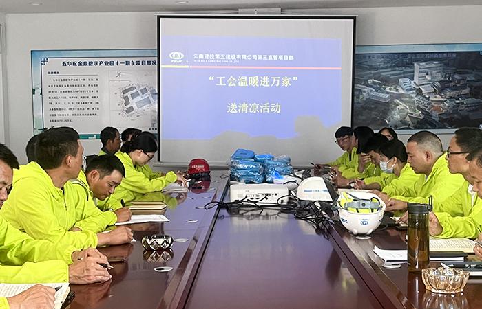 6月下旬至8月份,第三直管項(xiàng)目部工會在生產(chǎn)一線陸續(xù)組織開展2023年度“工會溫暖進(jìn)萬家”送清涼活動,為直管部金鼎數(shù)字產(chǎn)業(yè)園(一期)項(xiàng)目、永勝片區(qū)項(xiàng)目、五華區(qū)醫(yī)院項(xiàng)目、祿勸中醫(yī)院項(xiàng)目以及玉溪元江片區(qū)項(xiàng)目一線管理人員、產(chǎn)業(yè)工人代表送上了夏日清涼。在活動中,直管部領(lǐng)導(dǎo)班子向生產(chǎn)一線管理人員、產(chǎn)業(yè)工人們宣貫《把學(xué)習(xí)貫徹習(xí)近平新時(shí)代中國特色社會主義思想不斷引向深入》及《防暑降溫小貼士》的相關(guān)知識,宣傳講解了…
