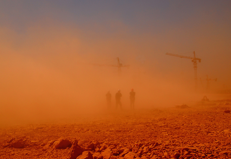 風(fēng)中的工地 ---在遍野風(fēng)塵的昆明新機(jī)場工地作業(yè)的云南五建員工 作者 高玉和 攝自云南五建公司昆明...