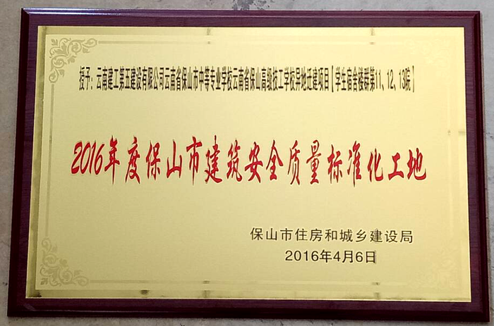直四部:保山中等專(zhuān)業(yè)學(xué)校異地遷建項(xiàng)目獲“2016年度保山市建筑安全質(zhì)量標(biāo)準(zhǔn)化工地”