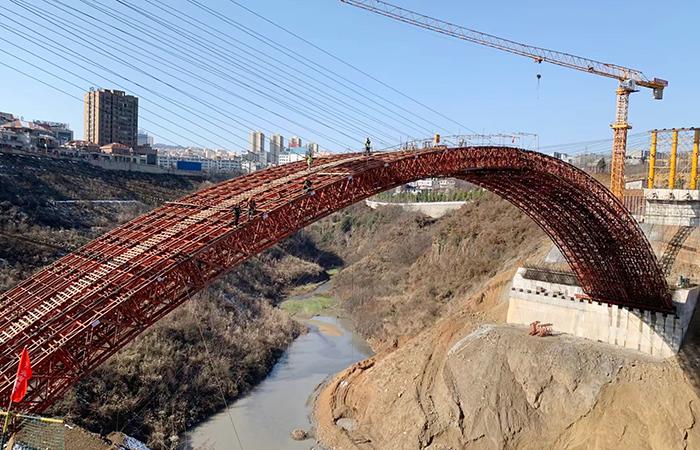 鎮(zhèn)雄三孔景觀橋鋼拱架順利合龍