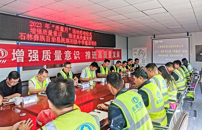 9月13日上午,五〇二直管項(xiàng)目部在石林彝族自治縣民族初級中學(xué)建設(shè)項(xiàng)目組織召開了以“增強(qiáng)質(zhì)量意識 推進(jìn)高質(zhì)量發(fā)展”為主題的2023年“質(zhì)量月”活動啟動會,直管部班子成員及各科室負(fù)責(zé)人、建設(shè)單位代表、監(jiān)理單位代表出席此次啟動大會。會議要求,一是要充分認(rèn)識“質(zhì)量月”活動的重要意義,充分運(yùn)用責(zé)任體系建立、質(zhì)量風(fēng)險(xiǎn)分析等質(zhì)量管理手段,全面構(gòu)建質(zhì)量管理體系和高效運(yùn)行機(jī)制,切實(shí)提高在建項(xiàng)目人員質(zhì)量管理素質(zhì),提升…