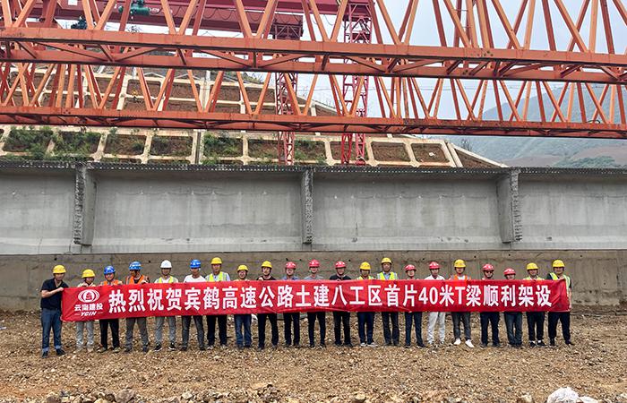 賓鶴高速巨龍?bào)浯髽蚴灼?0米T梁完成架設(shè)