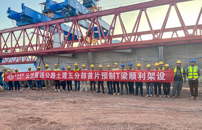 云蘭高速土建五分部完成首件T梁架設(shè)