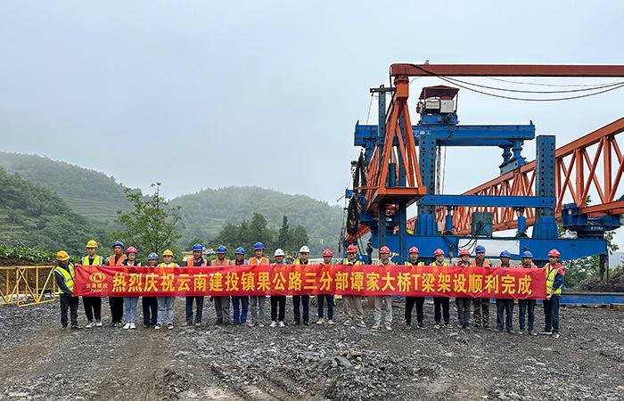 鎮(zhèn)果一級(jí)公路三標(biāo)譚家大橋T梁順利架設(shè)完成
